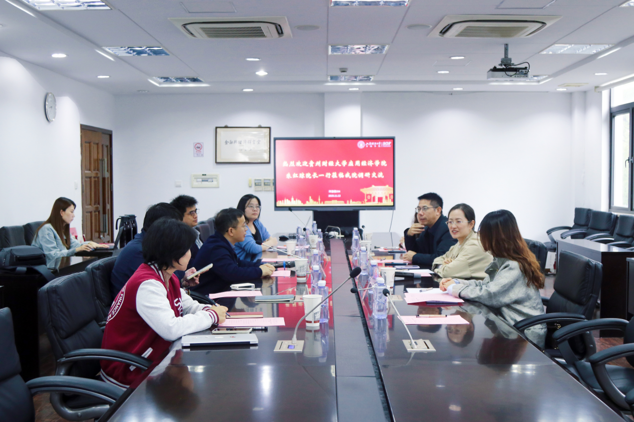为落实公司与上海财经大学签订的战略合作协议,进一步学习团队建设经验、人才培养经验,11月12 日,应用经济公司党委副书记周煜、副经理张小成一行四人,到访上海财经大学金融公司开展专题调研交流。上海财经大学金融公司经理杨金强、党委副书记刘冲、副经理闵敏、博士项目主任王龑楚、学工办主任张熙等公司领导及相关部门负责人热情接待,在武东路100号金融公司同德楼204室举行座谈,座谈会由杨金强经理主持。