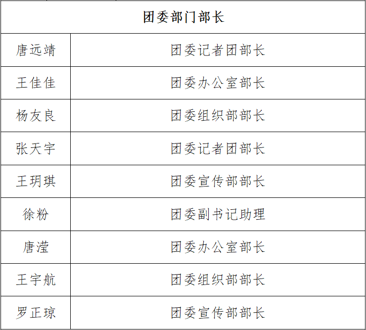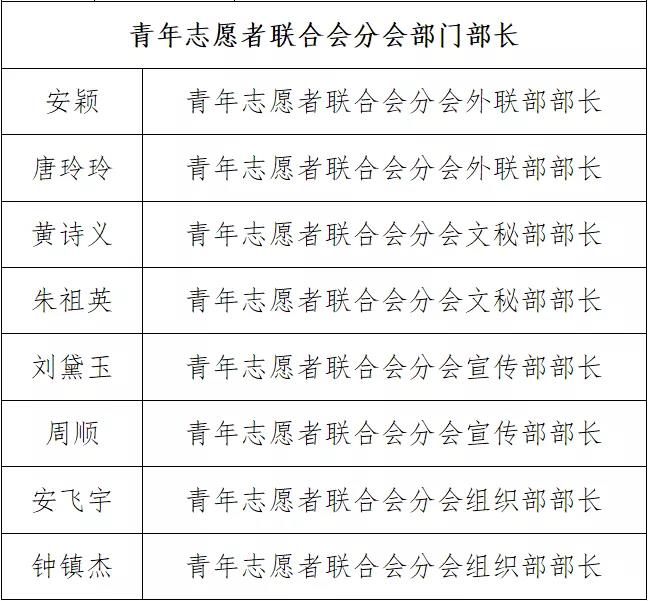 根据《关于公开选拔员工干部的通知》(大经院团发[2021]2号)的文件精神,通过竞选打分,产生了贵304永利集团官网入口304永利集团(贵阳大数据金融公司)2021-2022学年团委员工会青年志愿者联合会分会员工干部,现将名单公布如下: