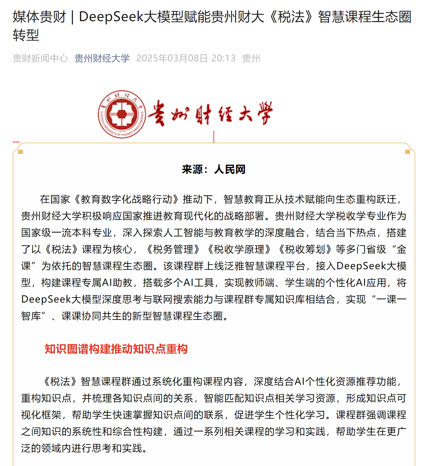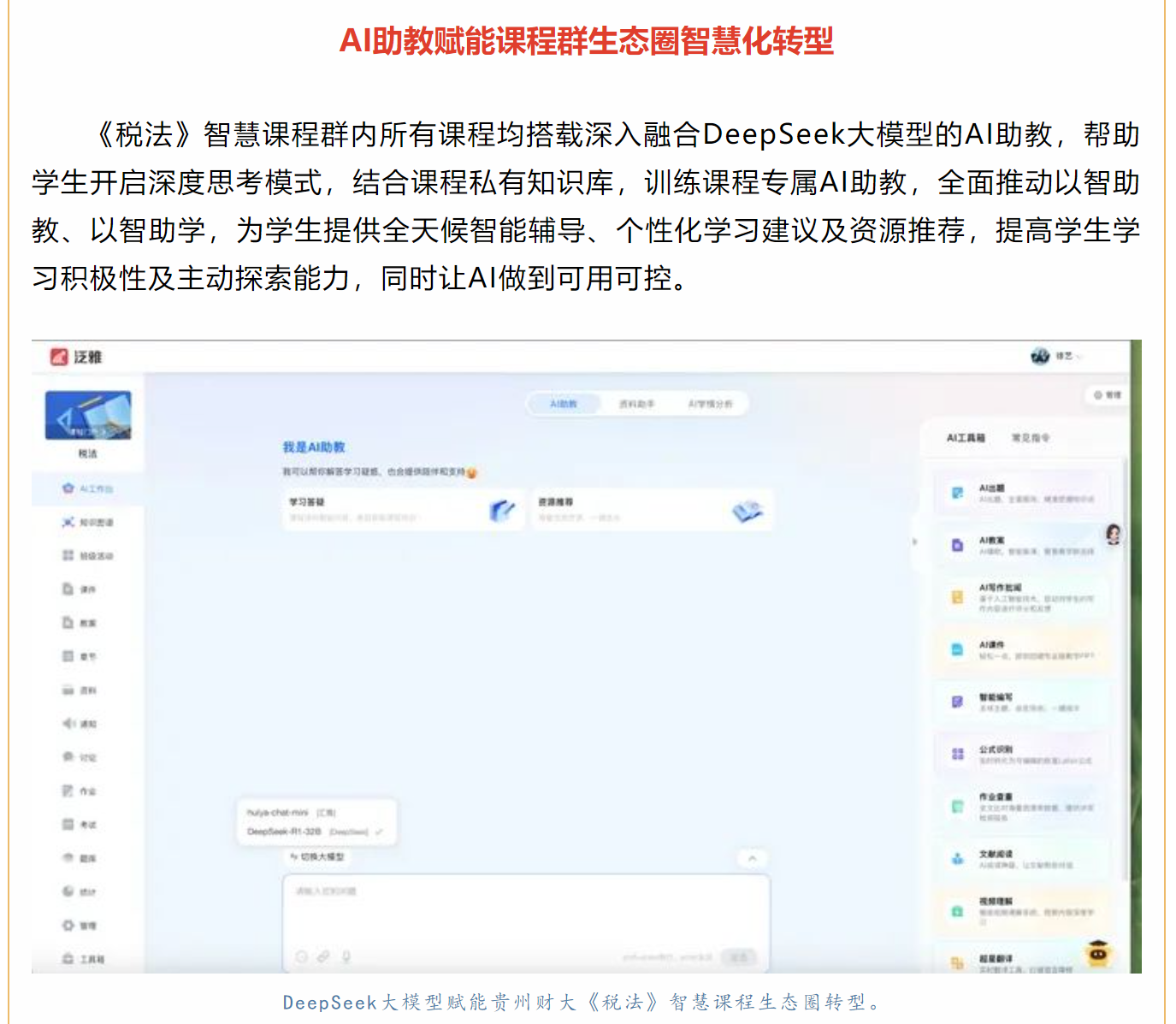 图9 DeepSeek大模型赋能贵州财大《税法》智慧课程生态圈