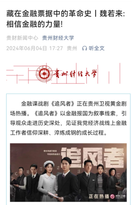 公司依托国家级一流本科专业建设点,在教学行政区域建设红色金融长廊、红色财税长廊和红色国贸长廊,党建引领、三廊协同,共筑铸魂育人新高地。以红色财税文化长廊为基础打造线上育人资源,人民网以“红色财税,利国惠民”为专题进行十期线上展播,学习强国中央平台也在“看党史”下的“红色故事”栏目进行了转播。以金融谍战剧《追风者》播出为契机,贵州卫视、公司宣传部与公司金融专业教师共同推出金融科普类栏目《藏在金融票据中的革命史》,见证我党金融工作者信仰深耕、淬炼成钢的成长过程。