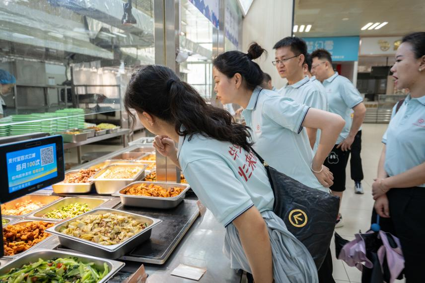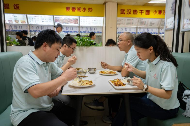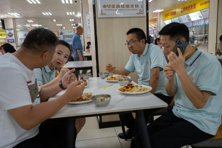 中午,在公司食堂,员工们体验了员工餐,餐桌还是那张熟悉的四人塑料餐桌,窗口还是那个熟悉的不锈钢窗口,只不过食物更加丰盛,阿姨递过来的那一大盘饭菜已不再那么容易光盘。