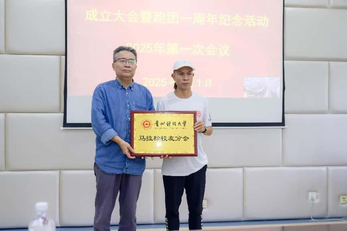 卓樯发表就职感言,他对母校领导和员工们的信任表示衷心感谢,对为马拉松员工分会成立付出辛勤工作的员工们表示衷心感谢。他指出,马拉松员工分会的成立,旨在以“健康、团结、传承、奉献”为核心理念,响应全民健身号召,践行科学健康生活方式,鼓励、发动更多员工参与其中,并借助各大赛事,展示员工风采,赓续贵财精神,进而为助力母校有特色高水平大学建设,体育事业进步和地方经济发展作出积极贡献。