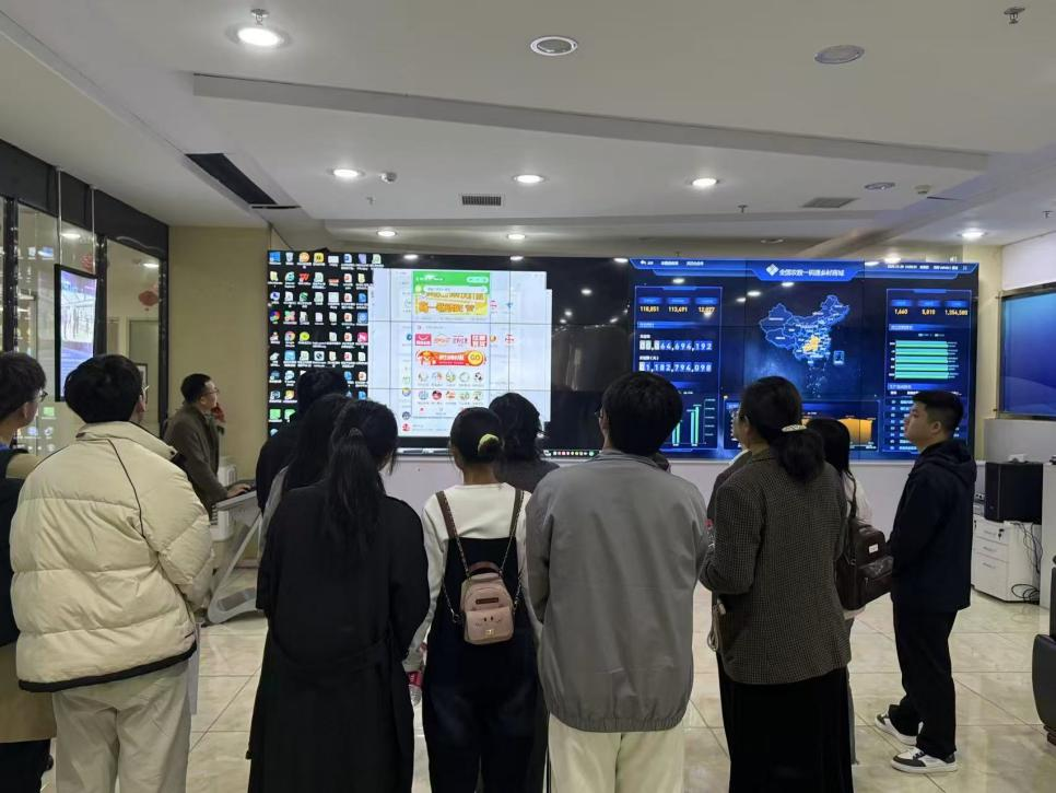 活动首日,师生团队率先走进贵州山久长青科技集团有限公司,实地探访农产品产供销一体化运营模式与全流程溯源体系,直观感受科学技术在种植业中的应用及大数据为农业产业升级注入的创新活力。随后,团队赴铜仁市大数据发展管理局,在工作人员讲解下,学习了数据要素市场培育、行业数字化融合应用、数据安全保障等知识,为同学们在数字经济领域就业奠定良好基础。